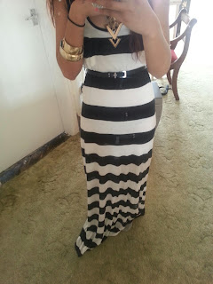 Tip: A trick to make your waist look smaller, and legs look longer is to place the belt just below your ribs, above your hips. This method works really well with the stripes creating definition of the waist with the horizontal lines.